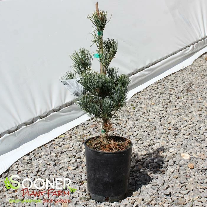 Buy Blue Short-Needled Japanese White Pine online. Blue Short-Needled Japanese White Pine is a very showy pine with an open habit, having blue-green needles in tight bundles, that are shorter than other Japanese white pines and have more of an upward curve to them. Many persistent cones decorate the tall, moderately narrow tree.